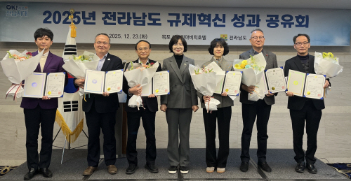 또 기업의 규제샌드박스 신청을 지원한 담양군, AI 등 신산업 분야 규제개선을 추진한 해남군, 산업단지 내 불합리한 규제 발굴에 힘쓴 함평군이 장려상과 상금 180만원을 각각 받았다.