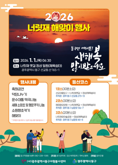 2026년 병오년(丙午年) 새해를 맞아 광주 지역 곳곳에서 시민들이 안전하고 뜻깊게 새해를 맞이할 수 있도록 다채로운 해맞이 행사가 열린다.
