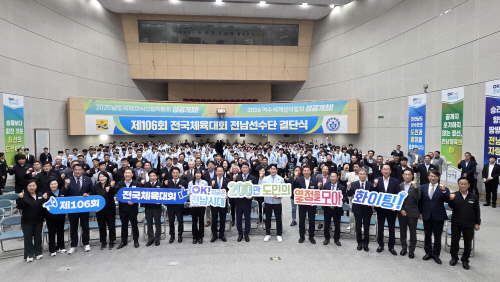 | 재106회 전국체육대회에 앞서 김영록 전남도지사, 송진호 전남도체육회장 등 관계자들이 선전을 다짐하고 있다. 사진제공=전남도체육회 |