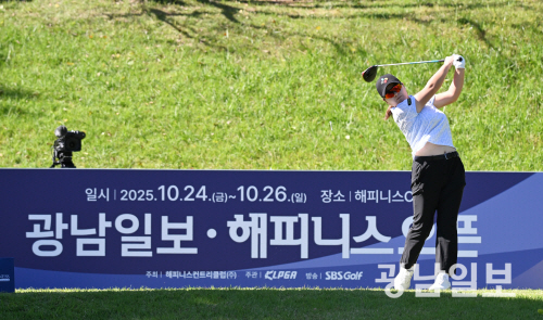 | 한국여자프로골프(KLPGA) 정규 투어 ‘2025 광남일보·해피니스 오픈’에서 홍정민이 티샷을 하고 있는 모습. 사진=최기남 기자 bluesky@gwangnam.co.kr |