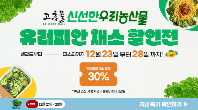 행사 기간 고흥몰에서는 30% 할인 쿠폰을 제공해 유러피안 채소를 보다 합리적인 가격으로 구매할 수 있도록 했다. 신선도와 품질을 우선으로 엄선한 상품을 선보여 가정 내 간편식부터 연말 파티 메뉴까지 폭넓게 활용할 수 있다.