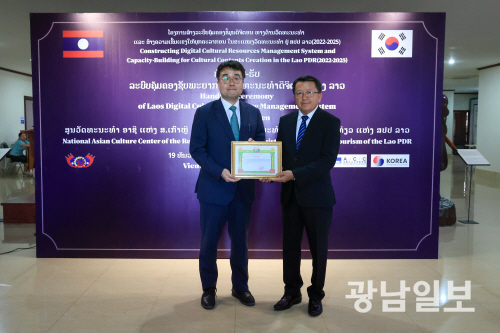 | 지난 19일 라오스 비엔티엔 국립박물관에서 열린 ‘라오스디지털문화자원관리시스템(LCRMS) 이양식’ 모습. |
