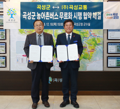 25일 곡성군에 따르면 최근 ㈜곡성교통과 군내버스 무료화 시행을 위한 업무협약을 체결하고, 제도의 안정적 운영에 협력하기로 했다.
