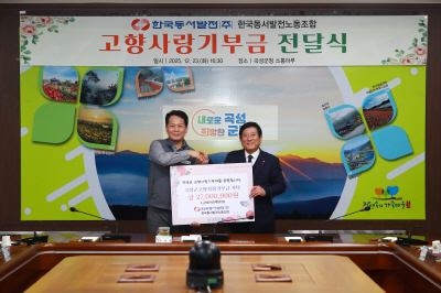 한국동서발전 노동조합은 소속 조합원 270명이 참여해 총 2700만원의 고향사랑기부금을 전달했다.