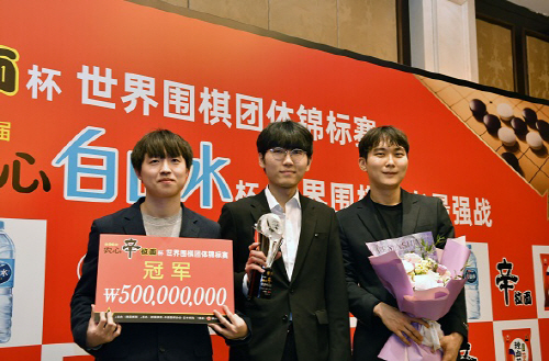 | 신진서 9단은 지난 2월 열린 제26회 농심신라면배 세계바둑최강전 최종국에서 중국 딩하오 9단을 꺾고 한국의 5연패를 이끌었다. 사진제공=한국기원 |
