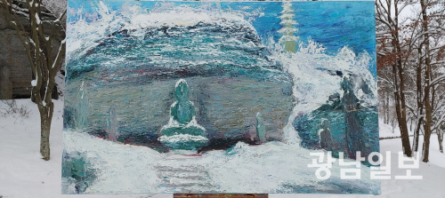 | ‘7층탑이 보이는 좌불이 있는 설경’ |