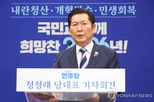 | 더불어민주당 정청래 대표가 26일 서울 여의도 국회에서 열린 기자회견에서 발언하고 있다.(연합) |