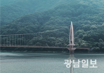 28일 담양군에 따르면 담양호에 설치 예정인 미르교(가칭)는 총 경간 330m, 유효 폭 2.1m 규모의 보도현수교(출렁다리)로 조성된다.