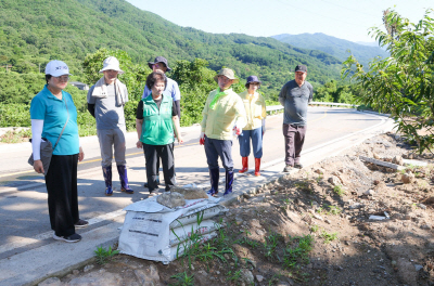 | 광양시가 ‘시민과 함께 만드는 행복한 안전도시 광양’을 목표로 안전인프라 선제 구축으로 안전도시를 만든다. 다압면 수해현장을 찾아보며 피해상황을 확인하는 시 직원들의 모습. |