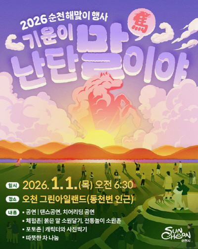 시 관계자는 “2026년 붉은 말의 해를 맞아 팔마의 도시 순천에서 시민 여러분과 함께 활기찬 새해를 열게 되어 뜻깊다”며 “이번 해맞이 행사를 통해 시민 모두가 적토마처럼 힘찬 발걸음으로 희망찬 순천의 내일을 함께 만들어 가는 계기가 되기를 바란다”고 말했다.