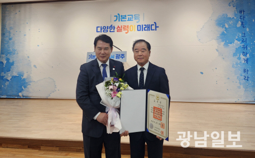 이날 수여식에서 이정선 광주시교육감은 박철홍 ㈜골드클래스 회장에게 국민교육발전유공 정부포상을 전수했다.