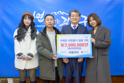 김미라 대표는 “구례에서 받은 사랑과 응원을 다시 지역사회에 돌려드리고 싶은 마음으로 매년 기부를 이어가고 있다”며 “작은 정성이지만 경제적으로 힘든 시기를 보내고 있는 이웃들에게 따뜻한 위로가 되길 바란다”고 말했다.