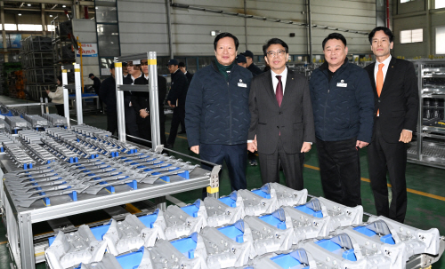 정 은행장은 프레스 라인을 중심으로 생산 공정을 둘러보며 주요 설비 현황에 대한 설명을 들었다. 현장에서는 기아 쏘울과 셀토스 차량에 적용되는 차체 부품 제조 현황이 소개됐으며, 광주글로벌모터스(GGM) 캐스퍼 EV 관련 부품 생산 과정에 대한 설명도 이어졌다.