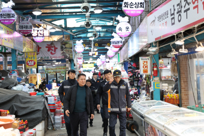 | 광주 동부소방은 2일 남광주시장과 남광주해뜨는시장을 방문해 화재 예방을 위한 현장점검을 실시했다. 사진제공=광주 동부소방서 |