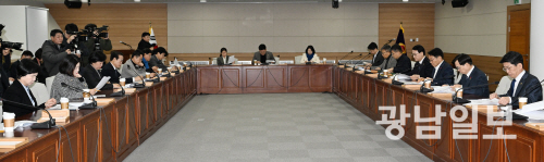 | 광주·전남 행정통합 시의원 간담회 6일 오전 광주시의회 대회의실에서 열린 광주·전남 행정통합 시의원 간담회에서 강기정 광주시장이 추진상황에 대해 설명을 하고 있다. 최기남 기자 bluesky@gwangnam.co.kr |
