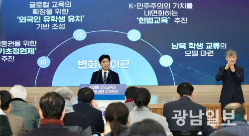 국제교류 확대를 통한 글로컬 교육 완성도 강조했다. 오는 3월 개교하는 전남미래국제고등학교를 중심으로 외국인 유학생 유치를 확대하고, ‘대한민국 글로컬 미래교육 작은 박람회’와 글로컬 K-에듀센터를 통해 전남교육의 성과를 세계와 공유할 계획이다.
