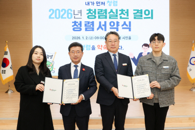시무식은 직원들의 새해 소망 영상 시청, 신년사 발표, 청렴 실천 결의 및 서약식, 시민의 노래 제창 순으로 진행됐다.