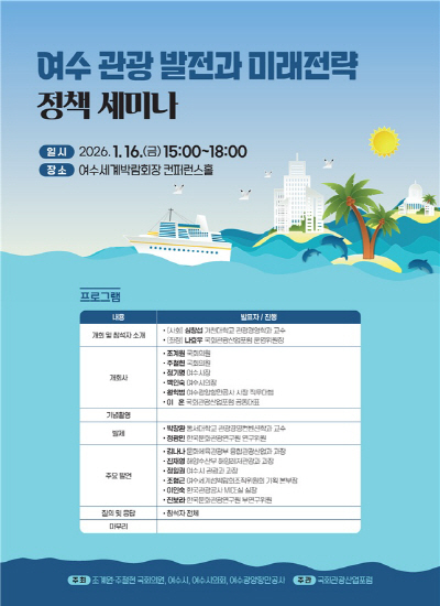 이번 세미나는 여수를 중심으로 한 해양·MICE 관광의 전략적 발전 방향을 모색하며, 다가오는 2026여수세계섬박람회와 연계한 지속가능 관광 기반 확충 방안 등을 논의하기 위해 마련됐다.