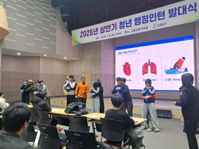 | 고흥군은 최근 군청 우주홀에서 취업 준비 청년 70명이 참석한 가운데 ‘2026년 상반기 청년 행정 인턴 발대식’을 개최했다. |