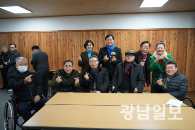| 광주시의회 환경복지위원회는 9일 병오년 새해를 맞아 광주장애인종합복지관을 방문해 광주장애인사랑복지회 관계자와 복지관 이용자들과 함께 신년 인사를 나누는 시간을 가졌다. |