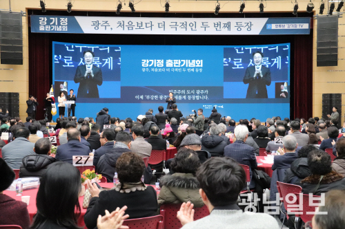 | 강기정 광주시장 ‘광주, 처음보다 더 극적인 두 번째 등장’ 출판기념회 11일 오후 광주 서구 치평동 김대중컨벤션센터에서 열린 강기정 광주시장의 ‘광주, 처음보다 더 극적인 두 번째 등장’ 출판기념회에서 인사말을 하고 있다.최기남 기자 bluesky@gwangnam.co.kr |