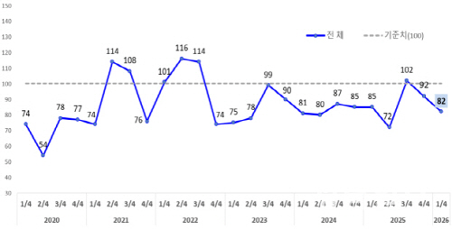 수익전망지수는 87로 전분기(80)보다 소폭 상승했지만 여전히 기준치를 크게 밑돌았다. 설 명절을 앞둔 단기적 매출 회복 기대감이 일부 반영됐으나, 인건비와 공공요금 등 고정비 부담이 지속되면서 수익성 개선은 쉽지 않을 것이란 인식이 작용했다.