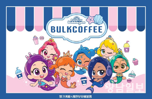 12일 (재)광주정보문화산업진흥원은 인기 어린이 애니메이션 IP ‘레인보우 버블젬’ 캐릭터를 커 피프랜차이즈 벌크커피에서 선보인다고 밝혔다.