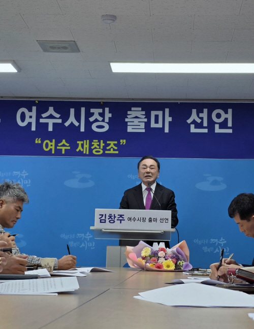 김창주 전 여수경영인협회장은 13일 여수시청 브리핑룸에서 기자회견을 열고 6월 지방선거 여수시장 출마를 공식 선언했다.
