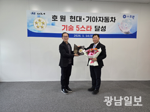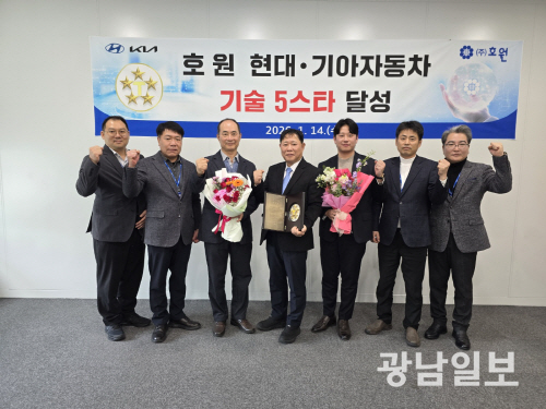 ㈜호원은 14일 현대차 남양연구소에서 열린 현대기아자동차그룹 ‘2025년 협력사 평가’에서 기술 부문 최고 등급인 ‘기술5스타’ 인증을 획득한 데 따른 인증패를 수여 받았다고 밝혔다.
