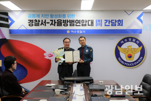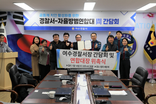 | 여수경찰서는 지난 14일 여수시 자율방범연합대와 함께 ‘공동체 치안 활성화를 위한 간담회’를 개최했다. |