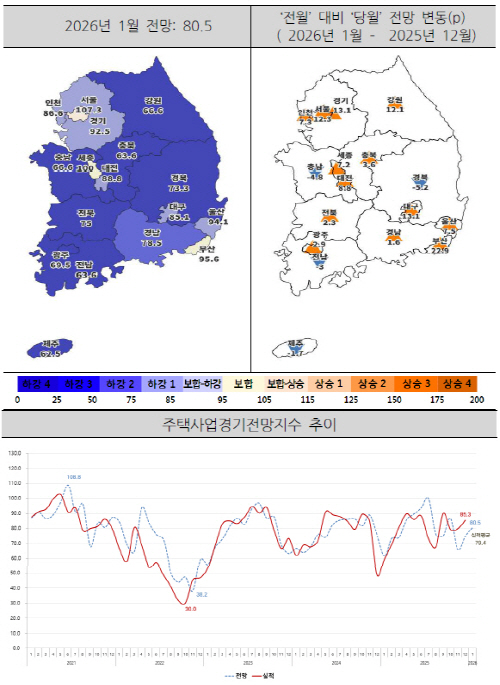 지난해 11월 기준 전국 준공 후 미분양 주택은 3만 가구에 육박하며 약 13년 만에 최대 수준을 기록하고 있고, 이 중 상당 물량이 비수도권에 집중돼 있다. 이러한 가운데 제조업 중심의 지방 산업단지 활력 저하와 고용 감소로 지역 주민들의 소득 수준과 주택 구매력이 약화하면서 주택사업자들의 경기인식 역시 위축된 것으로 보고 있다.