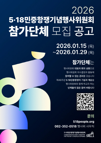 위경종 상임행사위원장은 “2026년은 1980년을 겪지 못했던 세대인 포스트 5·18세대에게 5·18정신을 계승하고, 45주년을 지나 50주년을 맞이할 징검다리가 되는 첫 해다”며 “비경험 세대의 기획과 강점을 살려 2026년 참가단체와 함께 46주년 기념행사를 준비하겠다”고 말했다.