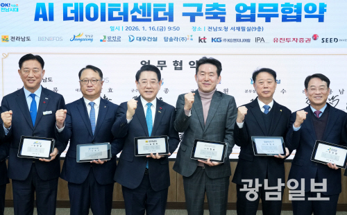 협약에는 전남도, 장성군, 강진군을 비롯해 베네포스, 대우건설, KT, 탑솔라, KG엔지니어링, IPA, 유진투자증권, 시드인베스트먼트 자산운용 등이 참여해 AI 데이터센터 구축과 연관 산업 생태계 조성에 협력하기로 했다.