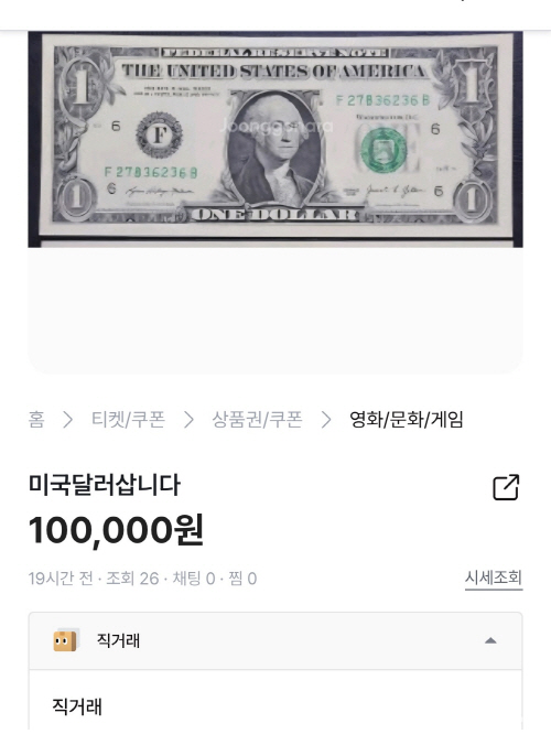 실제 중고거래 플랫폼에서는 외화, 특히 미국 달러를 사고판다는 글을 어렵지 않게 찾아볼 수 있다.