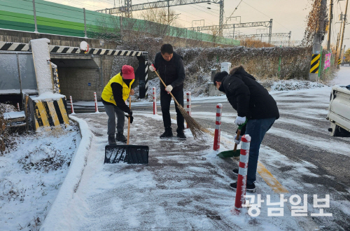 광산구는 오는 3월15일까지 대응 체계를 유지하며 결빙·제설 취약 구간 220개소를 중심으로 안전관리와 설해 예방에 주력할 방침이다. 이와 함께 ‘내 집(상가) 앞 눈 치우기’ 실천 확산을 위해 홍보물 배부와 캠페인 등 시민의 자발적 참여를 유도한다.