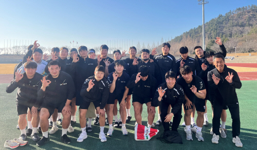 | 광주에 연고를 둔 OK금융그룹 OK읏맨럭비단이 전남 해남에서 올해 첫 동계 전지훈련에 돌입했다. 사진제공=OK금융그룹 |