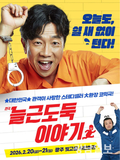 코미디 연극 ‘늘근도둑 이야기’가 오는 2월 20일 오후 7시, 21일 오후 2·5시 빛고을시민문화관에서 관객들을 기다린다.