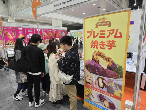 | ㈜팜스뱅크가 지난해 일본 식품 전시회에 참석해 치즈 군고구마와 아이스 파인애플 군고구마를 선보이며 큰 호응을 얻었다. |