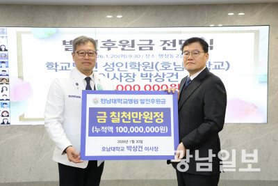 이어 지난해 연말 부친인 고 박기인 성인학원 설립자 겸 명예 이사장이 전남대병원에서 치료를 받게 됐고, 당시 정성 어린 진료를 펼친 의료진과 병원 측의 헌신에 깊은 감명을 받은 박 이사장이 감사의 마음을 담아 이번에 7000만원을 추가로 기탁하게 됐다.