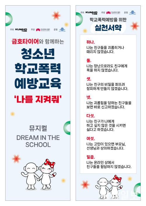 금호타이어의 ‘나를 지켜줘’ 활동은 아동, 청소년을 위한 교통안전 교육과 학교폭력 예방교육을 예술과 접목시킨 프로그램으로, 학생들의 올바른 사고력과 위험상황 대응력을 제고하기 위해 2020년부터 금호타이어와 한국메세나협회가 함께 추진하고 있다.