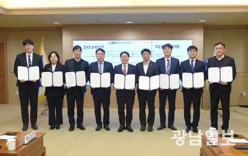 광주시는 22일 시청 비즈니스룸에서 광주신용보증재단과 광주은행, 하나은행, KB국민은행, NH농협은행, 신한은행, 카카오뱅크, 우리은행 등 7개 금융기관과 ‘2026년 소상공인 특례보증 지원 협약’을 체결했다.