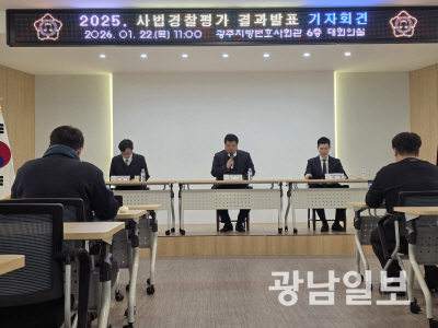 광주지방변호사회는 22일 동구 지산동 광주지방변호사회관 6층 대회의실에서 ‘2025년 사법경찰평가’ 결과를 발표했다.