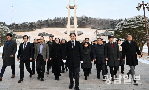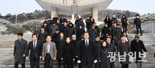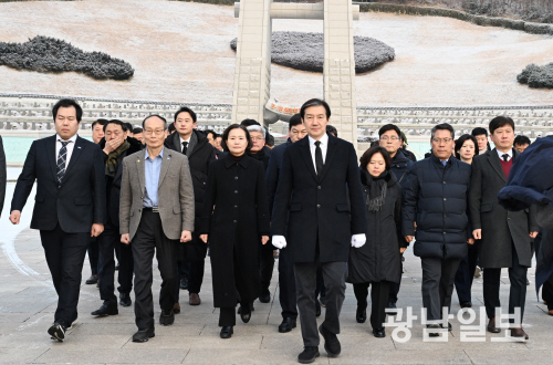 | 국립5·18민주묘지 찾은 조국대표 조국 조국혁신당 대표와 당직자들이 23일 오전 광주 북구 운정동 국립5·18민주묘역을 찾아 참배한후 걸어나오고 있다. 최기남 기자 bluesky@gwangnam.co.kr |