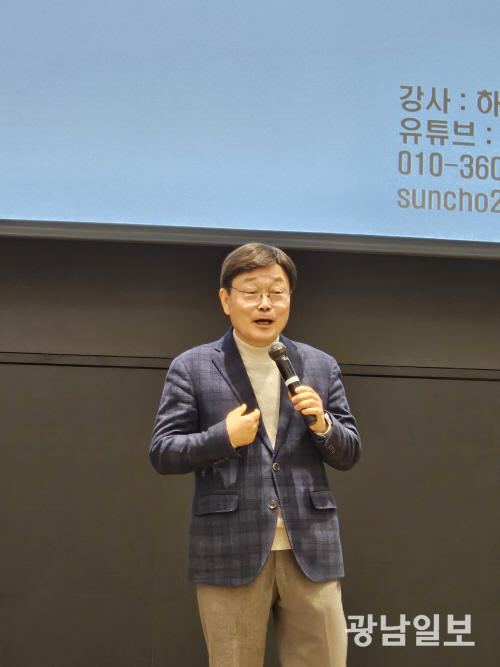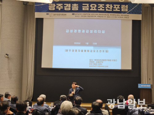 | 조영근 하이터치경영연구원장은 23일 홀리데이인 광주호텔에서 열린 광주경영자총협회 제1710회 금요조찬포럼에서 ‘감성경영과 감성리더십’ 주제 강연을 통해 인공지능(AI) 시대 기업 경쟁력의 본질을 ‘행동과 감정’에서 찾았다. |