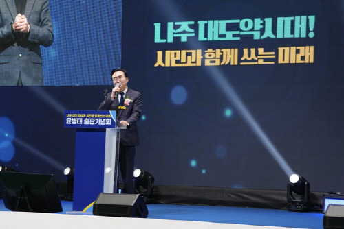 | 윤병태 나주시장이 24일 오후 나주종합스포츠파크 다목적체육관에서 출판기념회를 열고, 지난 시정 성과와 나주의 중장기 발전 비전을 시민들과 공유했다. |