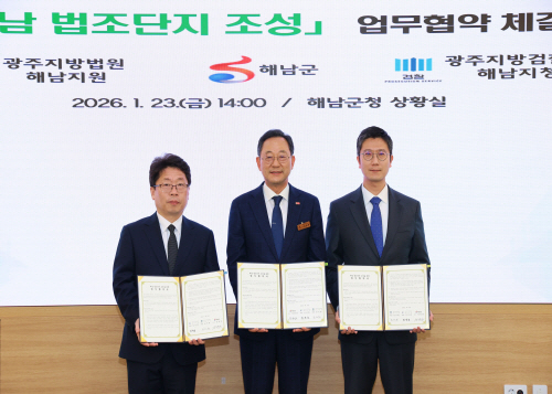 해남군 관계자는 “이번 업무협약은 해남 법조단지 조성을 위한 중요한 시작점이다”며 “군민과 이용객의 사법 접근성을 높이고, 지역 여건에 부합하는 안정적인 법조 환경 조성에 크게 기여할 것으로 기대한다”고 말했다.