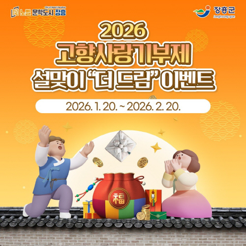 장흥군 관계자는 “설 명절을 맞아 고향을 응원하는 따뜻한 마음을 기부로 표현할 수 있도록 이번 이벤트를 마련했다”며 “앞으로도 고향사랑기부제가 지역 발전과 기부자 만족을 함께 높일 수 있도록 다양한 홍보와 혜택을 추진해 나가겠다”고 말했다.