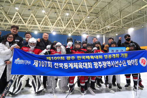 전갑수 광주시체육회장은 최근 사전경기로 개최된 빙상 종목 격려에 이어 동계체전을 앞두고 광주실내빙상장에서 구슬땀을 흘리고 있는 아이스하키 광주 선수단을 만나 선전을 기원하고 응원했다.