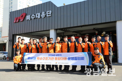 | 광주시 119특수대응단은 28일 대응단 작전실에서 ‘2026년 상반기 호남권 특수구조기관 통합대응 운영협의회’를 개최했다. |