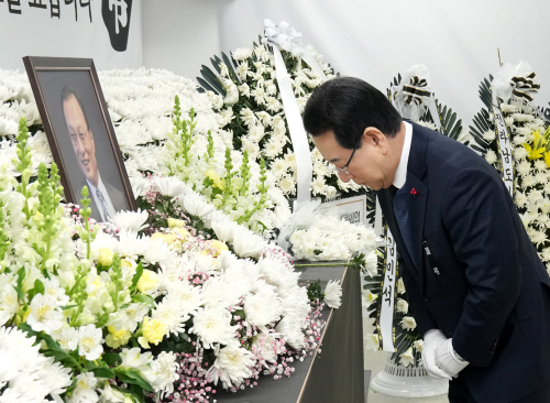 김영록 지사는 이날 전남도 실·국장들과 함께 헌화·분향한 뒤 묵념하며 고인의 넋을 기리고 영면을 기원했다.